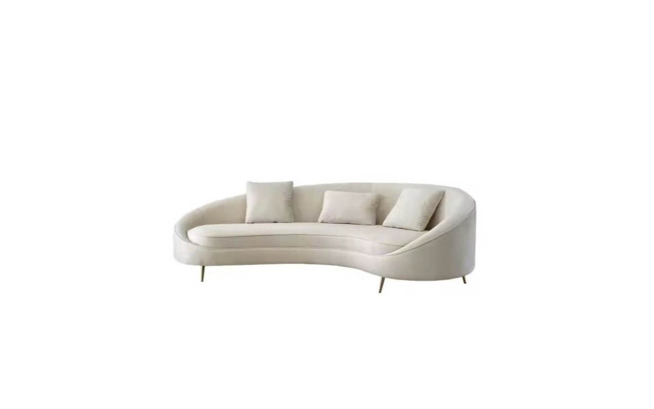 Chiếc sofa cong này là điểm nhấn đầy ấn tượng với lớp vải nhung, hoặc da cao cấp và chân inox không gỉ thanh mảnh, tinh tế.