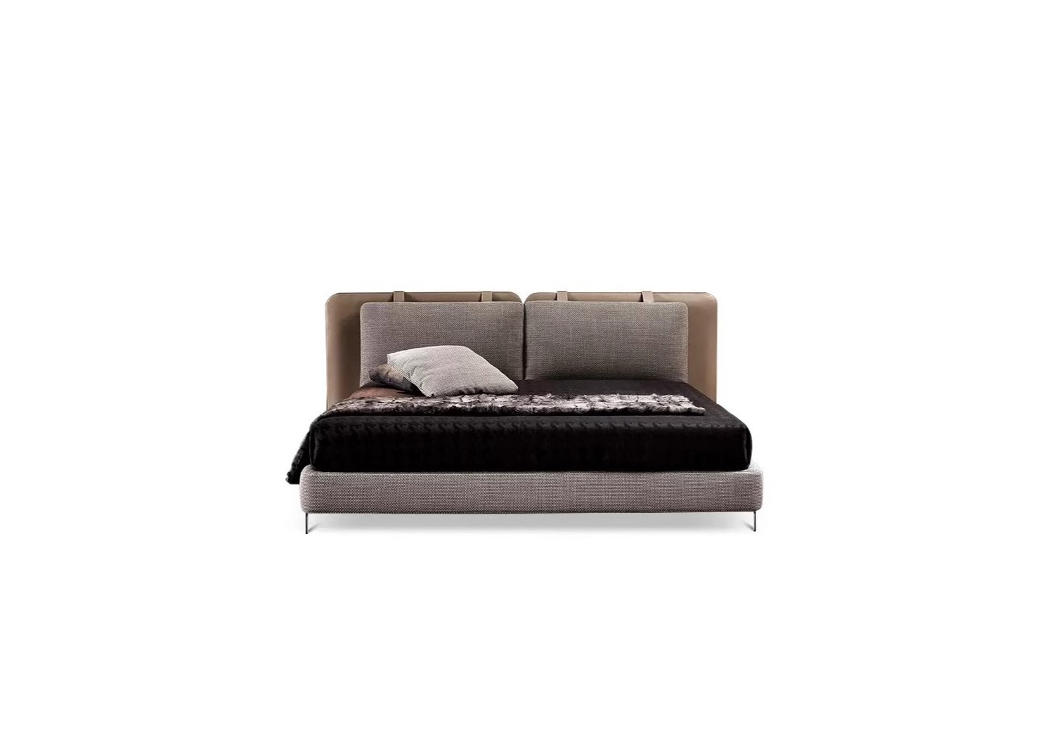 Các đệm tựa được gắn vào tựa đầu bằng dây da yên ngựa cao cấp. Giường được nâng đỡ bởi chân nhôm đúc thanh lịch, hoàn thiện với lớp sơn màu Pewter.